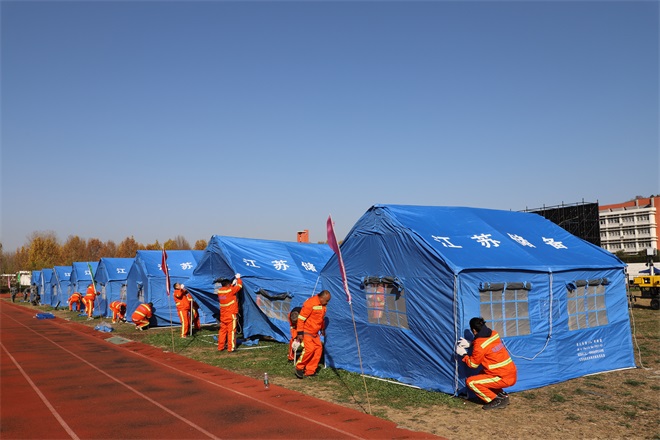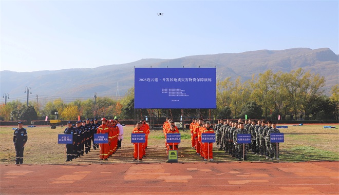 为检验自然灾害救助应急预案和救灾物资保障的科学性、针对性和可操作性,进一步增强应对突发自然灾害能力,提升灾害救援水平。11月26日上午,由市应急管理局主办,丰达公司协办的“2025 连云港•开发区地质灾害物资保障演练”在开发区高级中学举办,共计50名风暴突击队员参加。