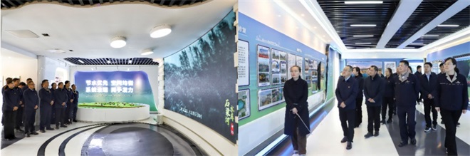 活动以实地研学、实践践行为载体,凝聚党建合力、赋能业务发展。首先,党员干部走进海陵湖水情教育馆,通过图文展板、实景沙盘演示,系统了解全省最 大人工水库——石梁河水库的前世今生,深刻感受上万民工敢教日月换新天豪情,手掰肩挑背扛的苦干实干劲头,根治水患、惠泽乡民的治水精神,学习借鉴石梁河水库从两违三乱到幸福河湖示范样板的科学治理经验,探索将水库建设中党旗引领下凝结的奋斗精神、治理智慧与公路养护实践相结合,谱写公路智慧养护新篇章。一幅幅今昔对比的图片、一段段鲜活生动的视频,诉说着水库建设的艰辛历程,见证洪涝频发生态破坏美丽蝶变的发展变迁,教育党员干部时时刻刻都要真抓实干、为民造福。